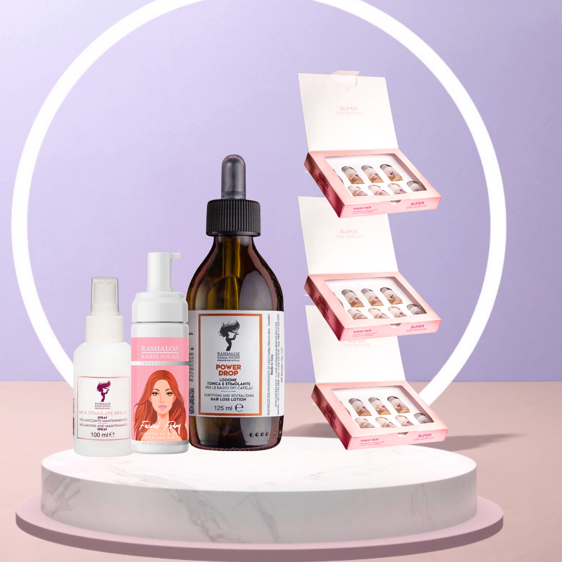 3 Lavender Ampules + 1 power drop + 1 Face foam + 1 Milk spray